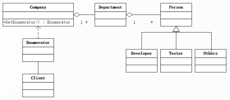 Iterator(client) --> Enumerator --> Company --> Department --> Person