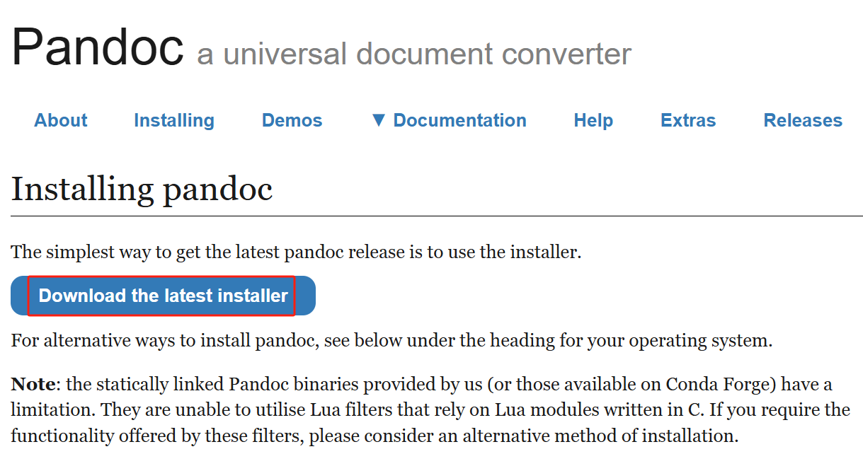 pandoc-3.7.0.1-windows-x86_64.msi),按照提示一步步安装即可。 - 安装完成后,要重启VSCode才能生效。