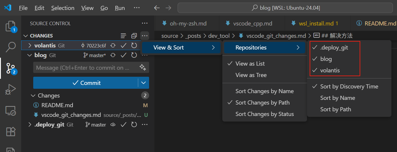 VSCode在Source Control->Changes中无法显示修改的文件